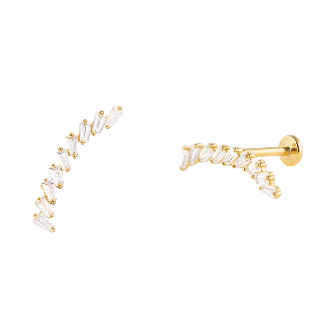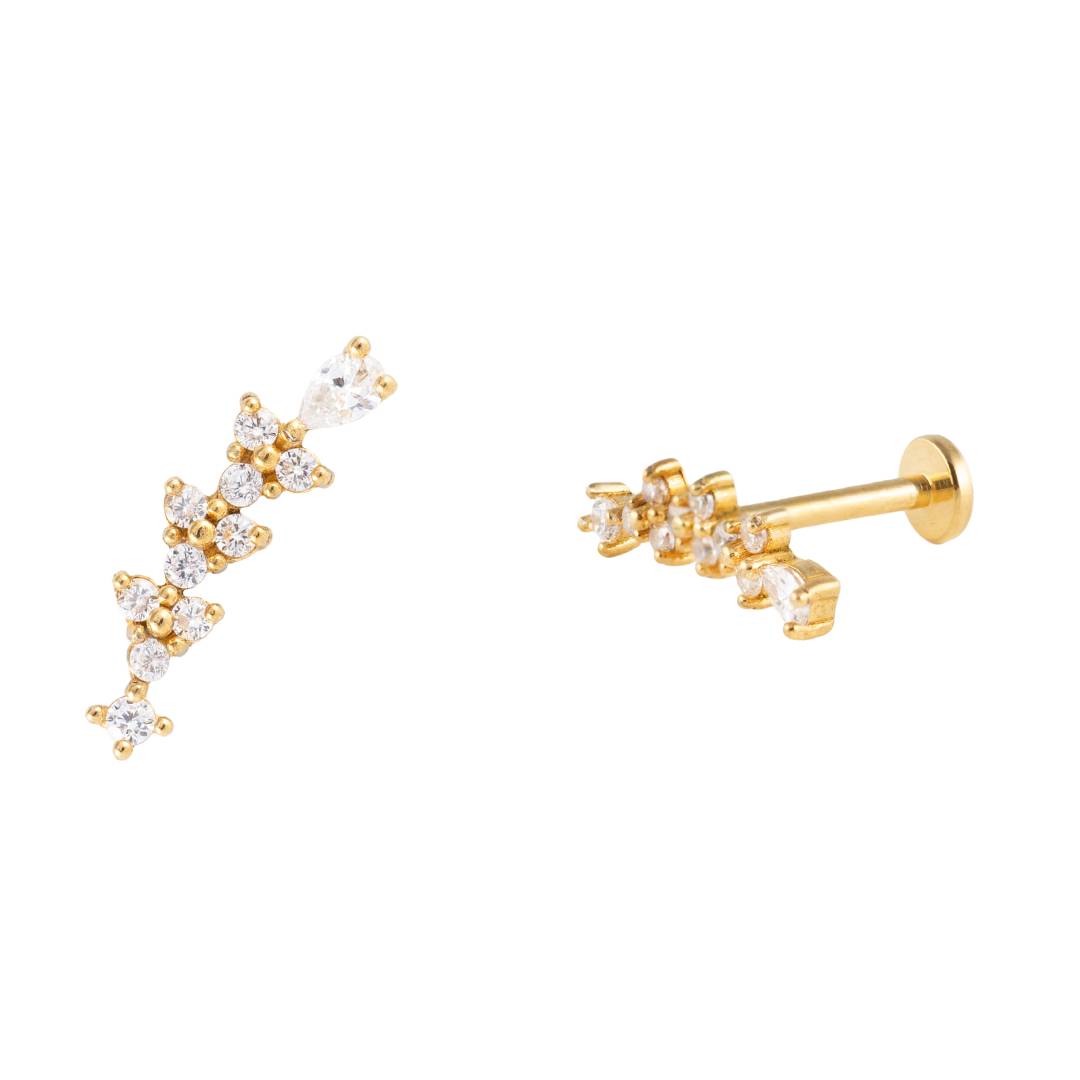 Apzeltīti un apsudraboti pīrsingi ar kristāliem. Pīrsingu kolekcijā atradīsiet dažādas stilīgas un oriģinālas rotaslietas, kas piemērotas caurumiem dažādās auss vietās, piemēram, hēlikss un labretes tipa pīrsings. Piedāvājam arī pīrsingus bez kristāliem dažādās formās.