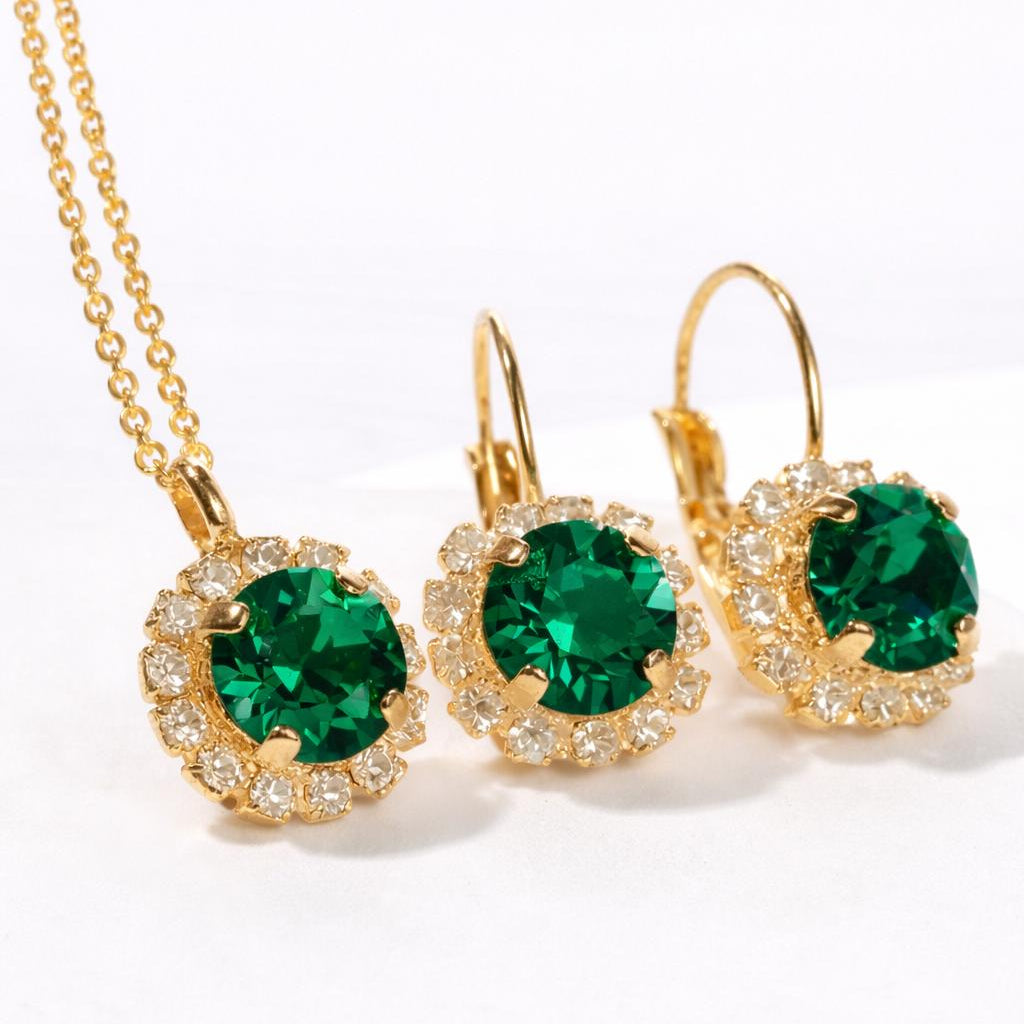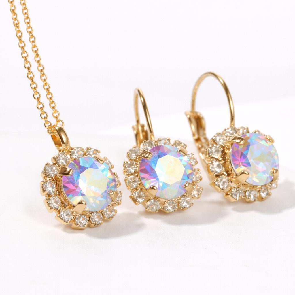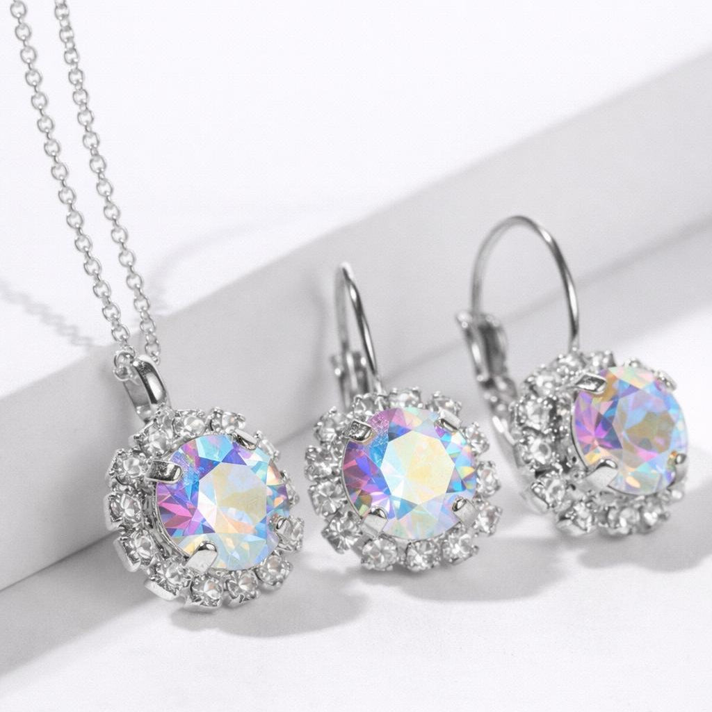 This classic style jewelry set with crystals will make a great gift for the holidays or just for yourself. A delicate chain and shiny earrings for a woman who appreciates elegance and quality.