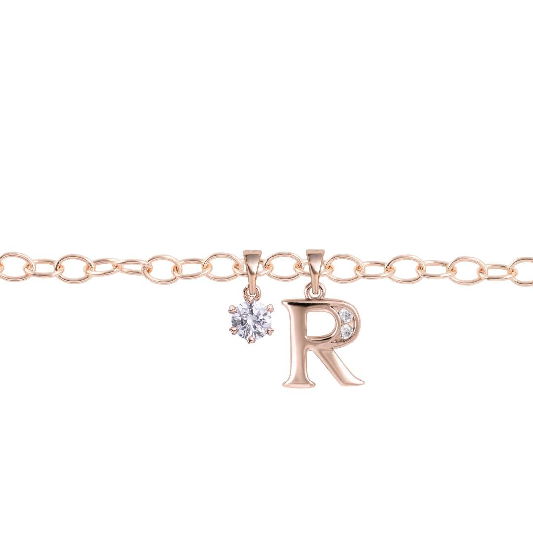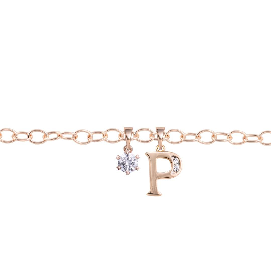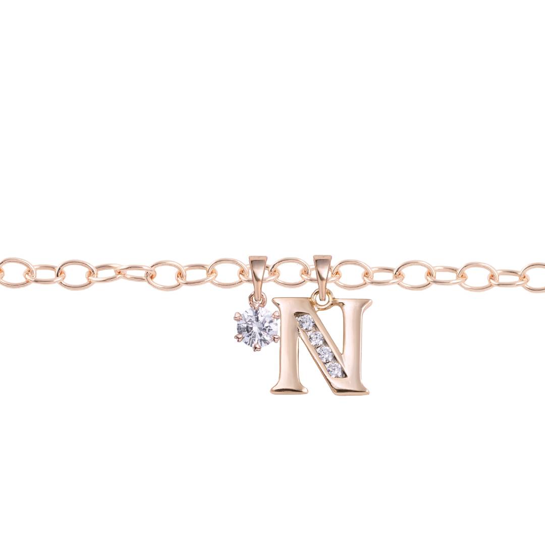 Rozā zelta kājas ķēdīte ar kristālu burtiņu un papildus kulonu dāvanā