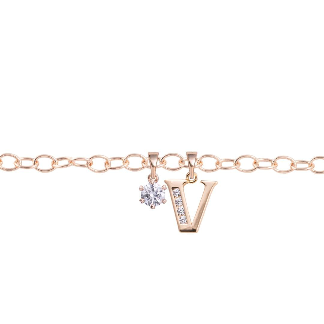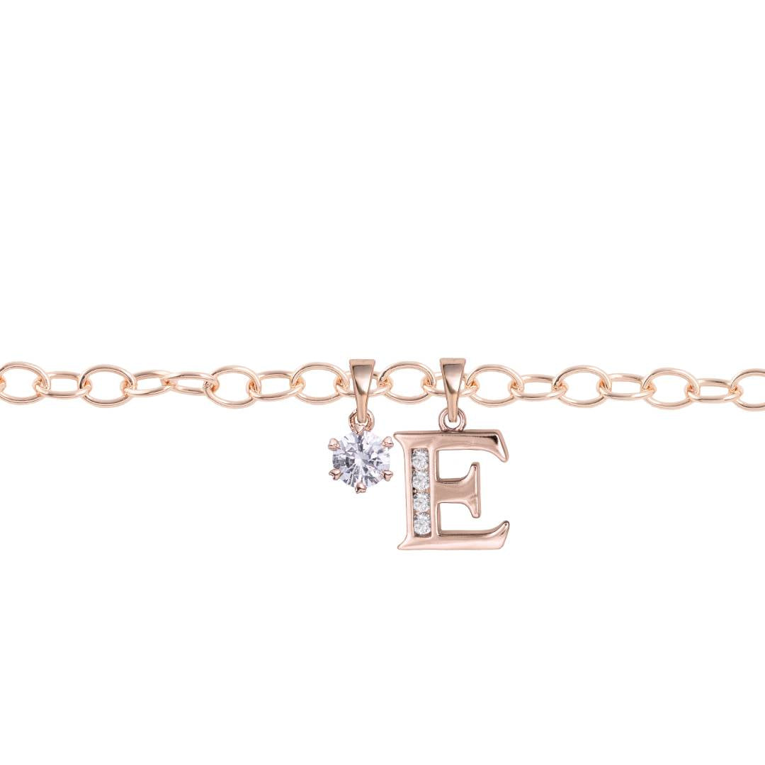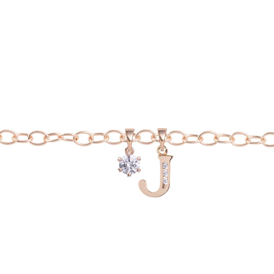 Rozā zelta kājas ķēdīte ar kristālu burtiņu un papildus kulonu dāvanā