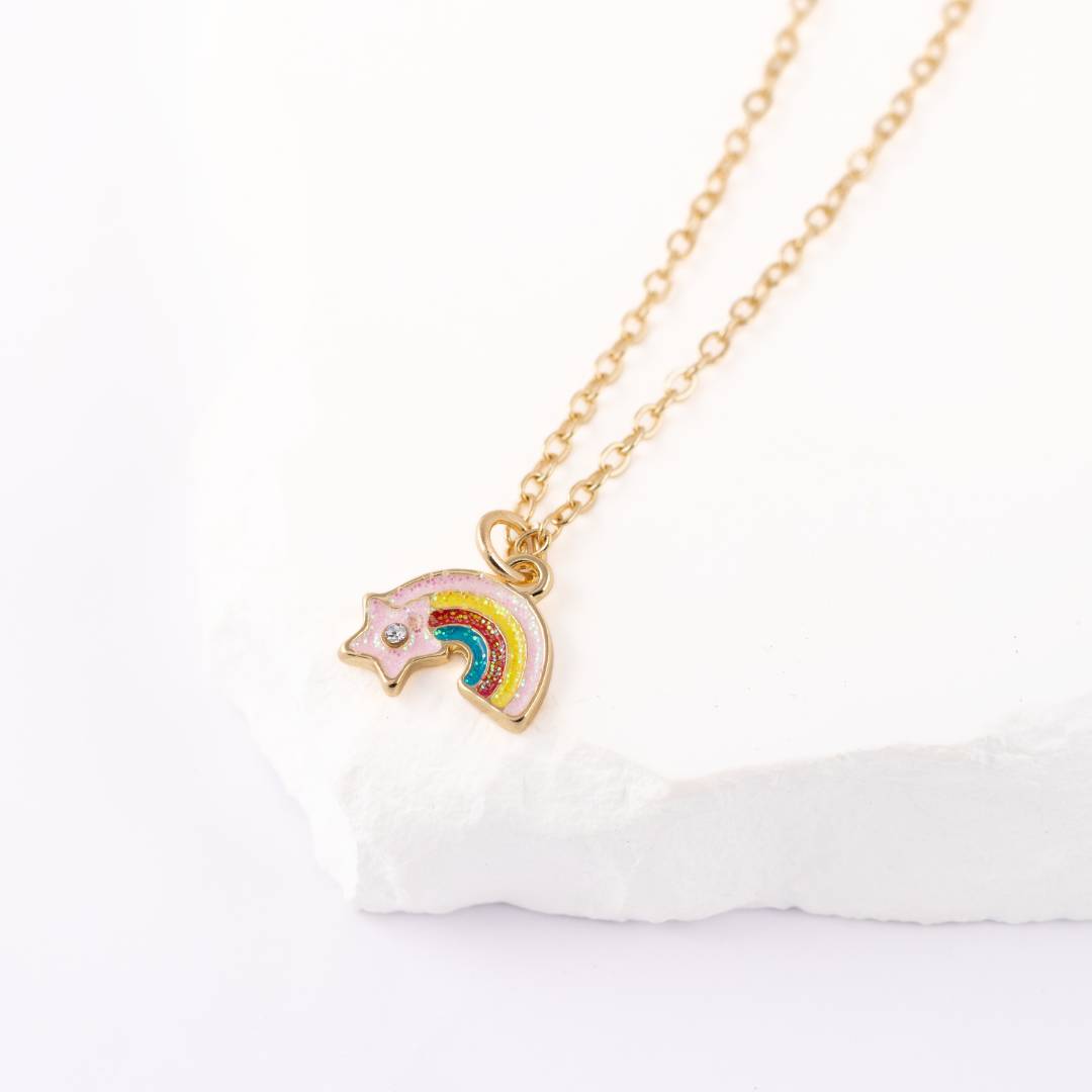 Krāsaina un rotaļīga bērnu kaklarota ar varavīksnes vai dinozaura kuloniņu – ideāli piemērota mazajiem sapņotājiem. Viegls un drošs dizains ikdienas valkāšanai vai svētkiem. Mīļa dāvana bērnudārza izlaidumam, dzimšanas dienai vai vienkārši – lai iepriecinātu!