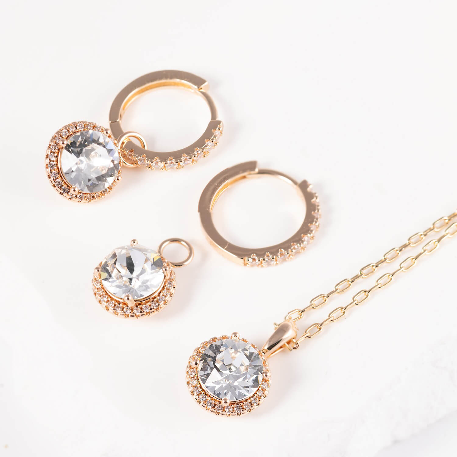 Eleganti kristālu aplīši. Smalka ķēdīte ar auskariem būs jauka dāvana svētkos sievietei, kurai patīk klasika.