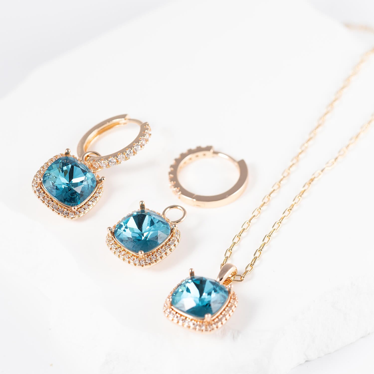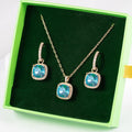 Skaists un izteiksmīgs rotu komplekts ACĀLIJA - auskariņi ar kvadrātveida kristāliem un pieskaņota kaklarota! Maigums un neticams mirdzums elegantā kristālu formā! Antialerģiskais rotu komplekta materiāls derēs arī jutīgai ādai.
